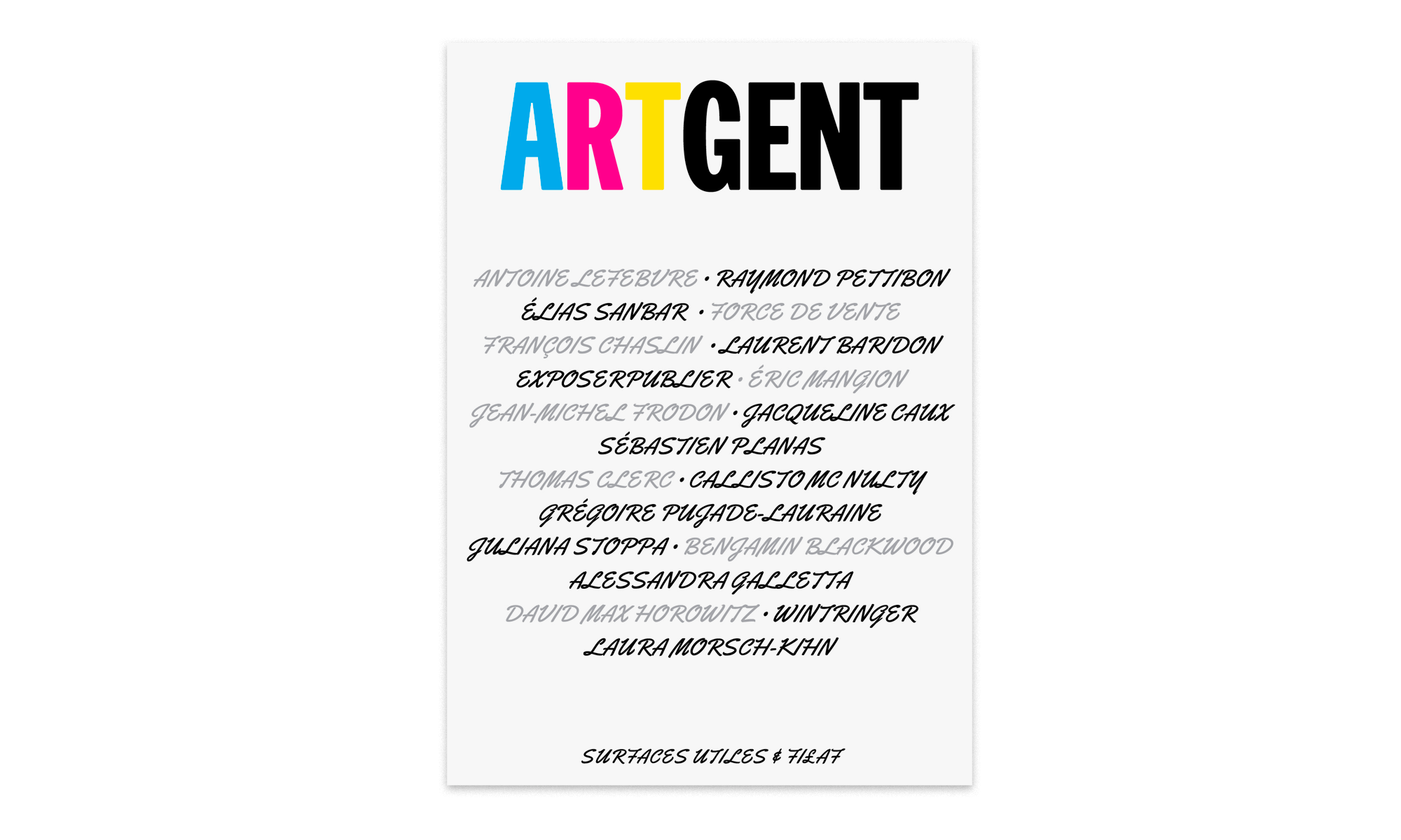 Julien Auregan, Soazig Auvray, Benjamin De Backer, Laurent Baridon, Nicolas Belayew, Piero Bisello, Aubrey Birch, Sophie Boiron, Guillaume Boutrolle, Bye Bye Binary, Étienne Candel, Jean-François Caro, François Chaslin, Thomas Clerc, Alfredo Coloma, Piero Bisello, Marine Declève, Louise Devin, Clémence Fontaine, Chloé Horta, Pierre Huyghebaert, Benjamin Installé, Nathan Izbicki, Philippe Jadin, Pierre Leguillon, Maxime Le Bon, Ludi Loiseau, Pia Louwerens, Diane Malatesta, Hélène Marian, Pierre Martel, Emanuele Marcuccio, Laurent Marissal, Céline Mathieu, Pierre Merle, Vincent Meessen, Nina Paim, Raymond Pettibon, antoine lefebvre editions, Pierre Leguillon, force de vente, ExposerPublier, Éric Mangion, Jean-Michel Frodon, Jacqueline Caux, Sébastien Planas, Callisto Mc Nulty, Grégoire Pujade-Lauraine, Juliana Stoppa, Benjamin Blackwood, Alessandra Galletta, Roxanne Maillet, David Max Horowitz, Laura Morsch-Kihn, Lotte Beckwé, Lorenza Longhi, Batsheva Ross, Jean-Claude Salemi, Élias Sanbar, Juan Pablo Saenz, Shervin(e) Sheikh Rezaei, Fabrice Schneider, David Le Simple, Femke Snelting, Steven Tallon, Diego Thielemans, Erik Thys, Bas van den Hout, Alexia de Visscher, Bernard Voïta.