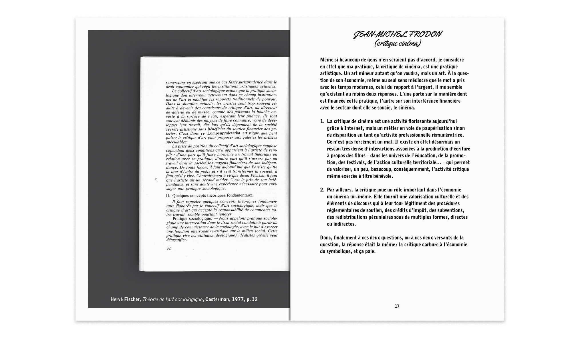 Profitant de la concentration d’un grand nombre d’acteurs du « milieu de l’art » sur un temps donné, Olivier Bertrand interrogea les invités du festival à propos de leur rapport à l'argent et aux tactiques et stratégies qu’ils inventent pour rendre viables ou rentables leurs pratiques respectives.