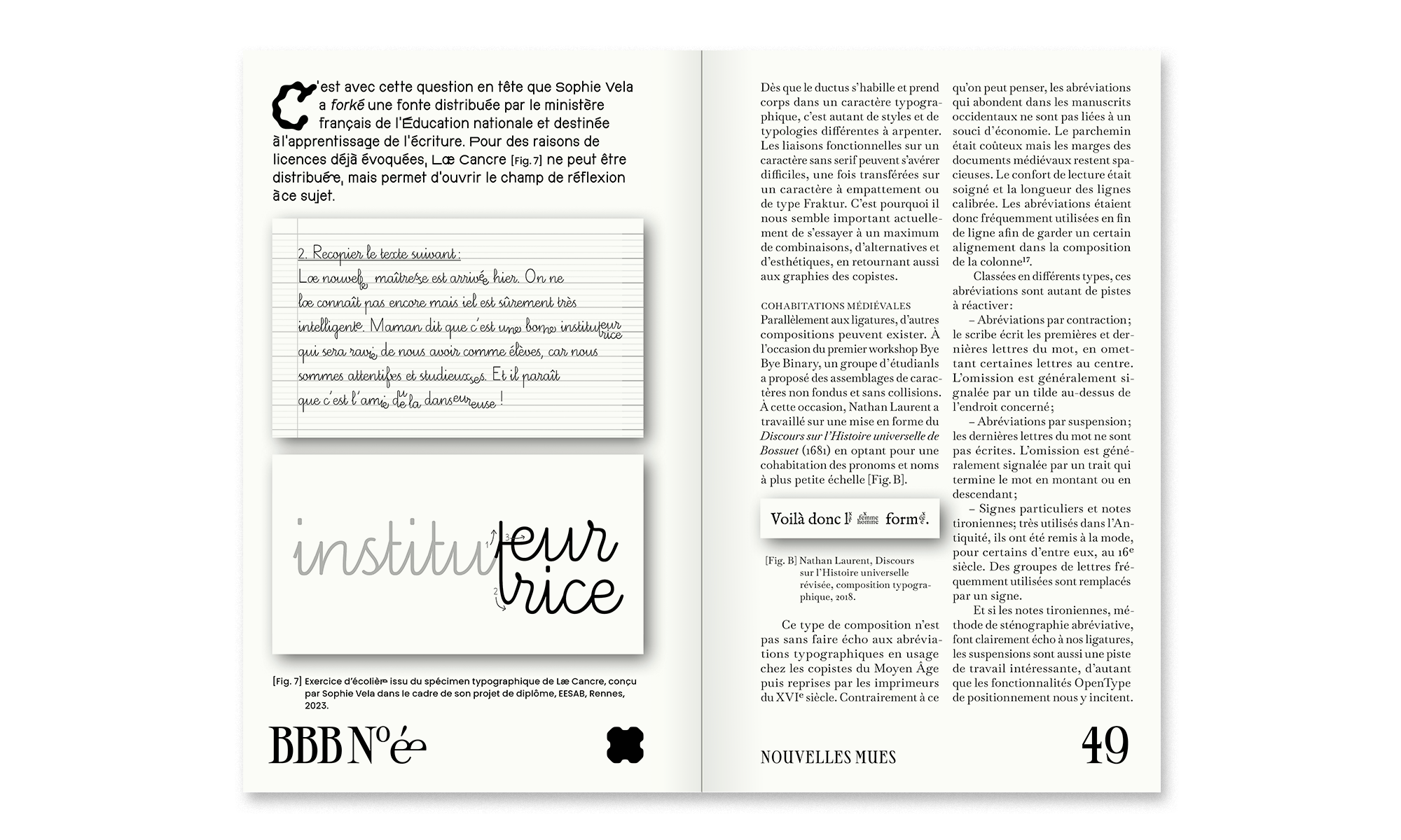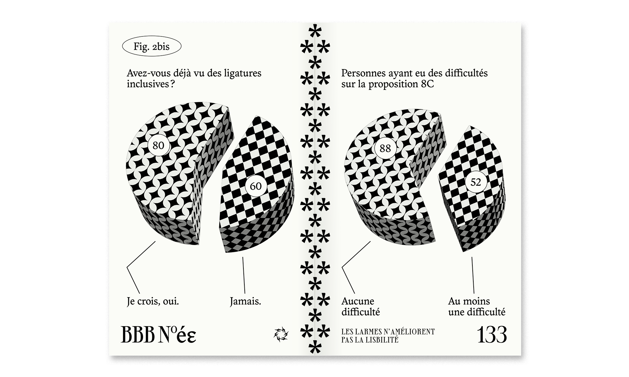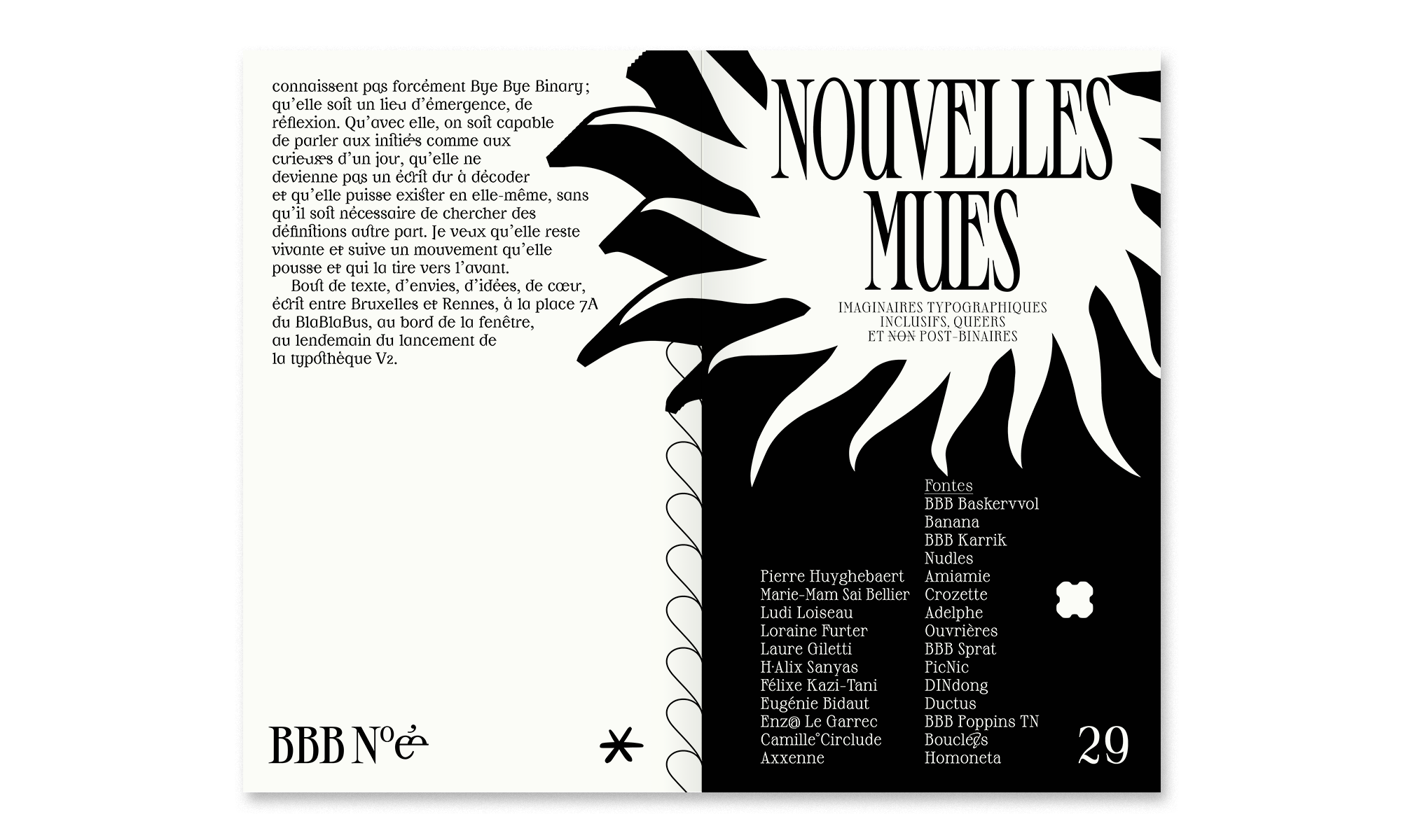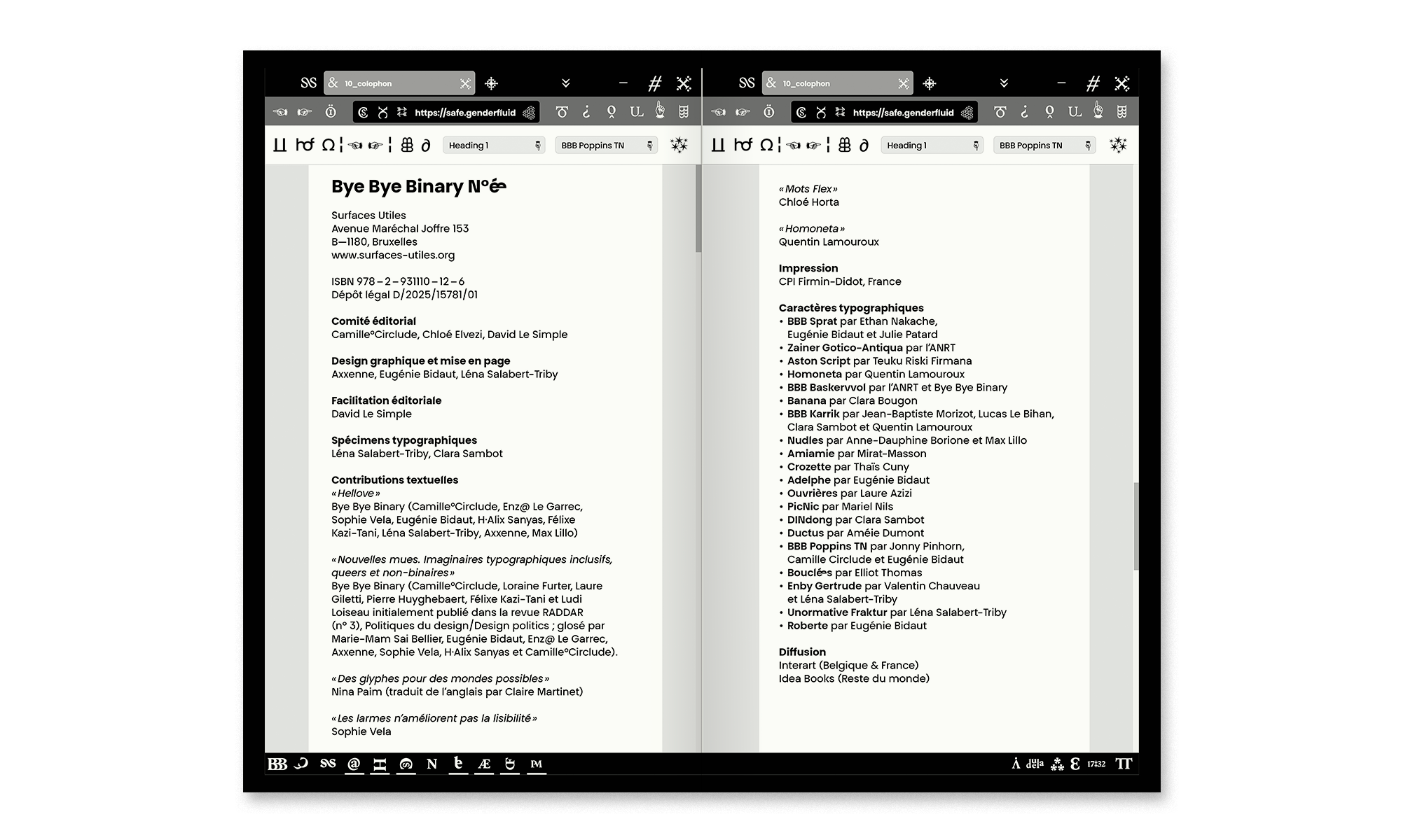 • les membres de BBB se réapproprient collectivement le texte « Imaginaires typographiques inclusifs, queer et non-binaires », publié en 2021. Iels y mettent à jour l'avancée de leurs recherches et font l'état des lieux de la place de l'écriture inclusive en France et en Belgique;