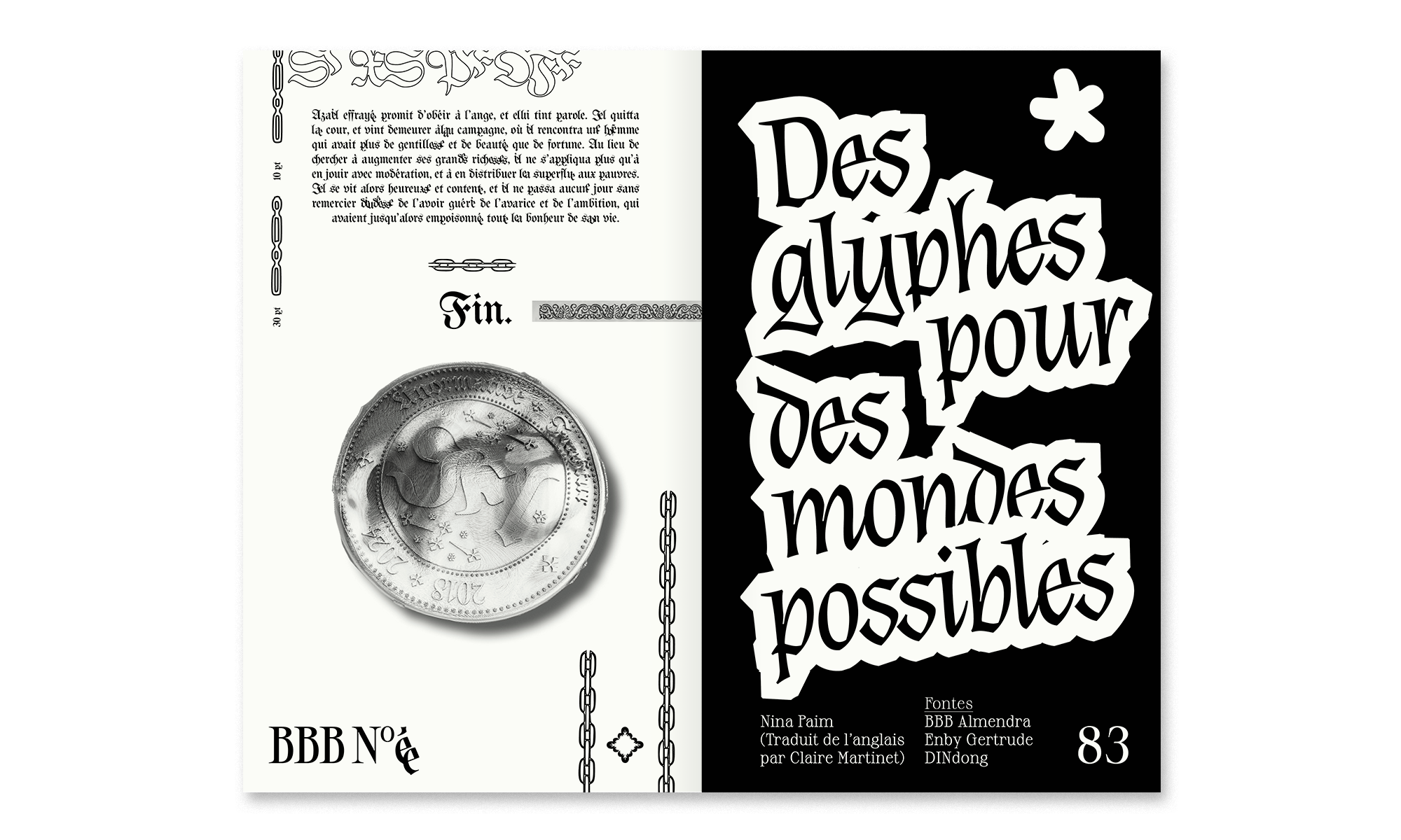 Offering writings that are situated, by the people concerned, is essential if we are to build up a living archive of a typo-graphic practice that makes minority groups visible. This movement continues to grow, despite the accusations of those who hold the power to decide what is legible, and therefore what is visible. The Bye Bye Binary magazine fuels the debate on the political impact of graphic design, language and the representation of bodies and identities.