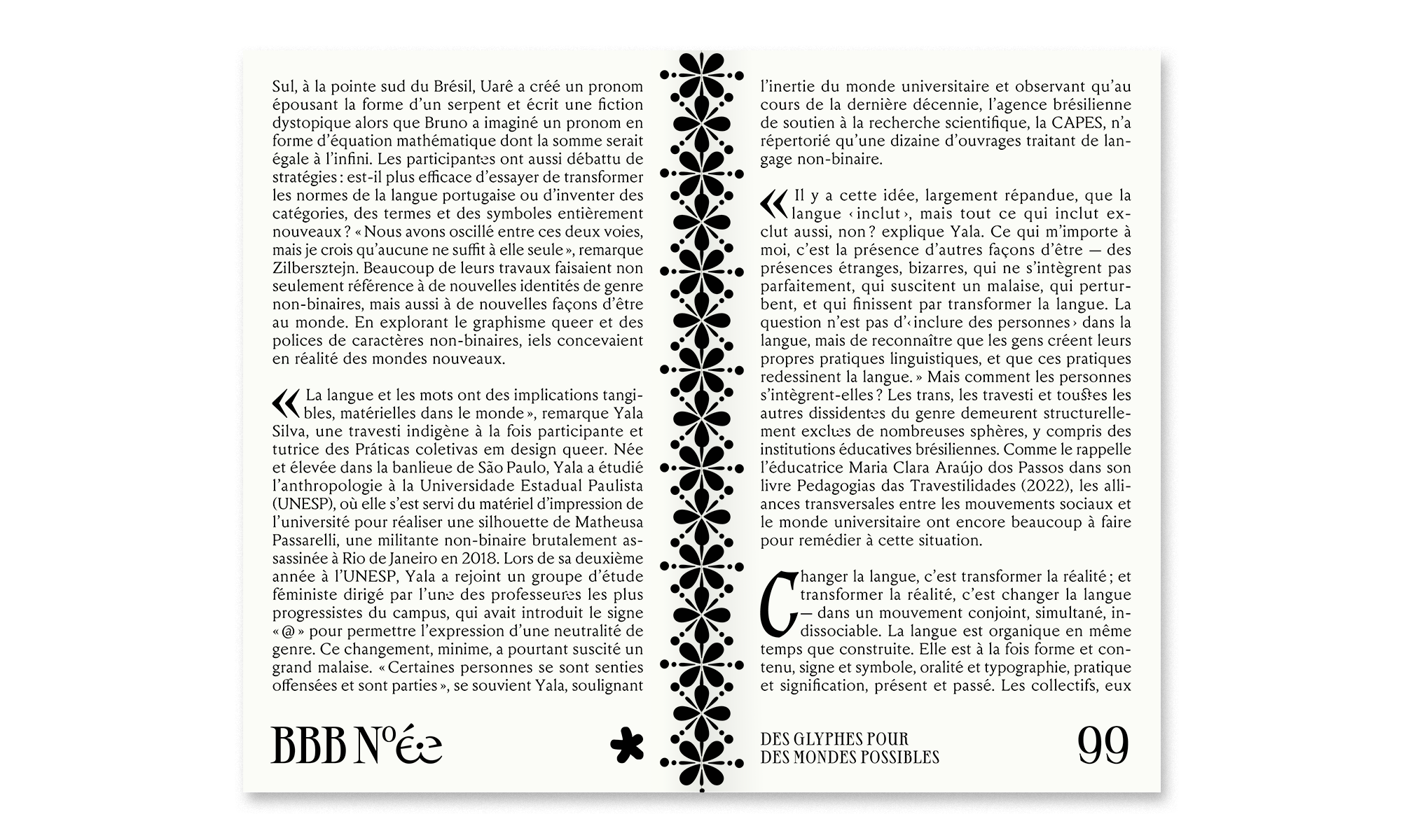 • a contribution by Nina Paim (Bikini Books, Futuress), who went out to meet players and activists in the field of inclusive typography in Portuguese;