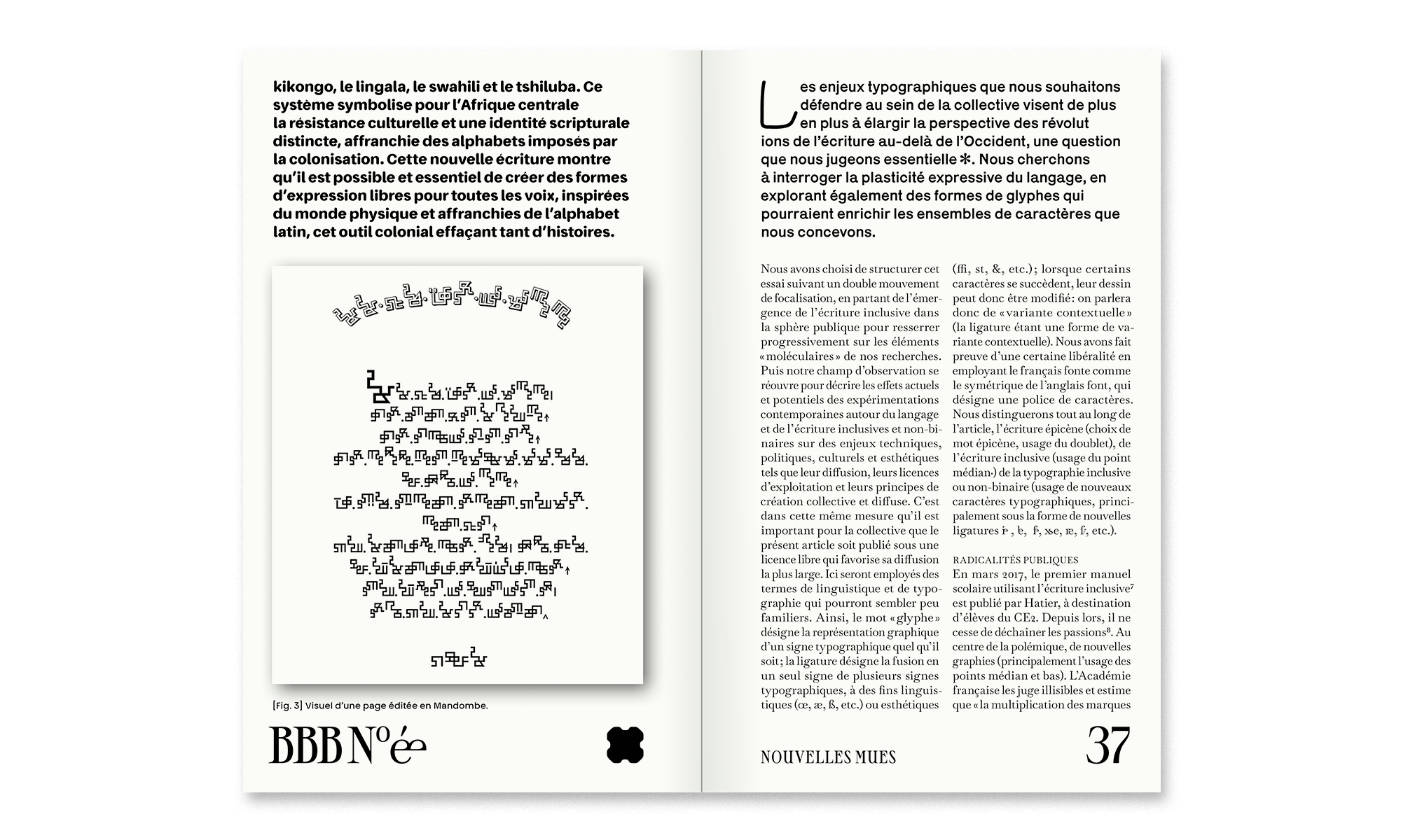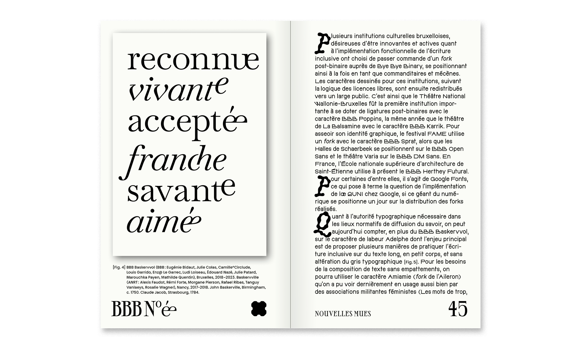 • BBB members collectively re-appropriate the text “Imaginaires typographiques inclusifs, queer et non-binaires”, published in 2021. In it, they update the progress of their research and take stock of the place of inclusive writing in France and Belgium;