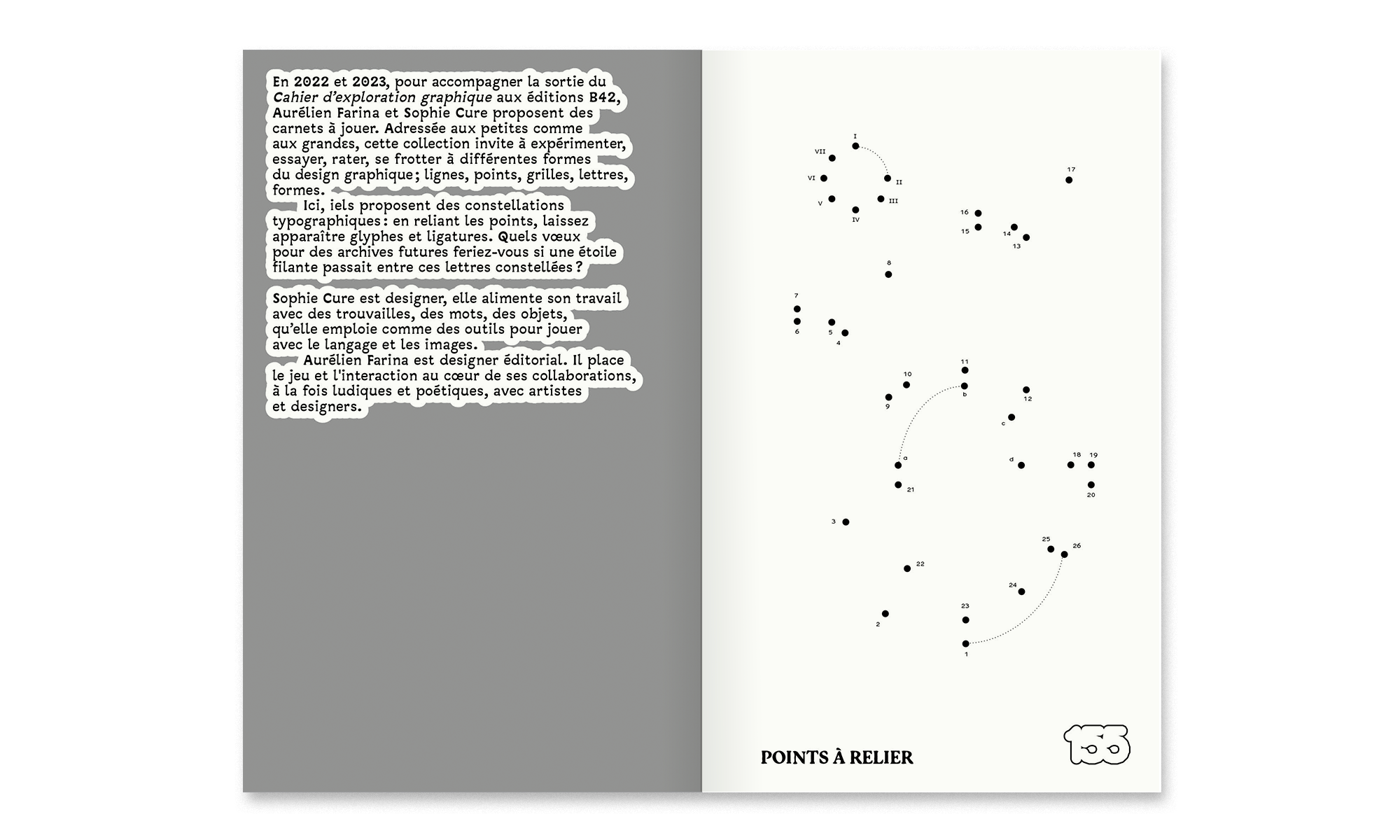• des points à relier inédits de Sophie Cure invitent à tirer les fils de nouvelles constellations pour un futur typographique hors-normes ;