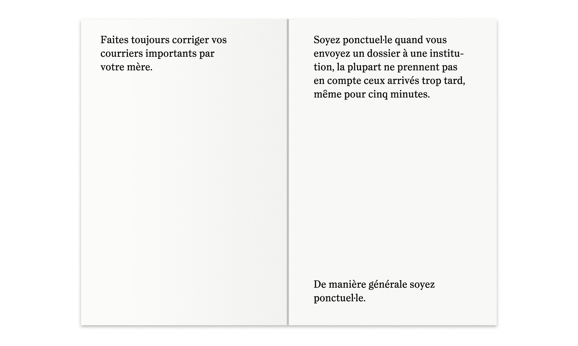 This book shares a collection of tricks and tips that have helped workers in the art world get by after school. These short instructions written in the imperative provide us, not without irony, with some answers to this great question: how to survive after art school?
