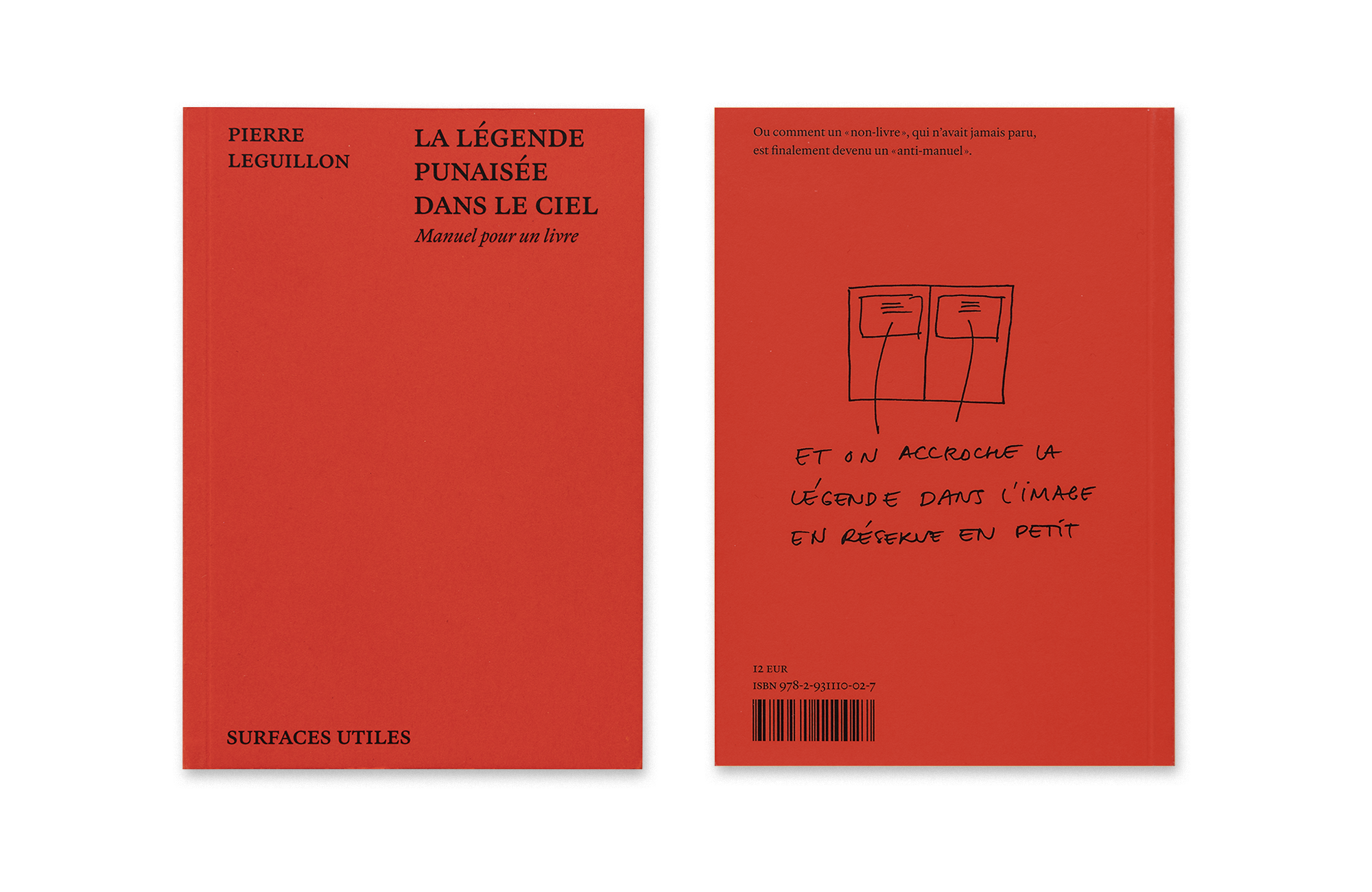 This book has yet to see the light of day. Today we can ask ourselves if it will ever equal the conflicting ideas that came that winter. Leguillon’s notes are jumbled, reworked here so they can be shared, yet devoid of that ideal form coveted by many before him. After seventeen years of maturation, Surfaces Utiles (the publisher) and Cultura (the printer) have combined their know-how to daringly play with this unmade book.
